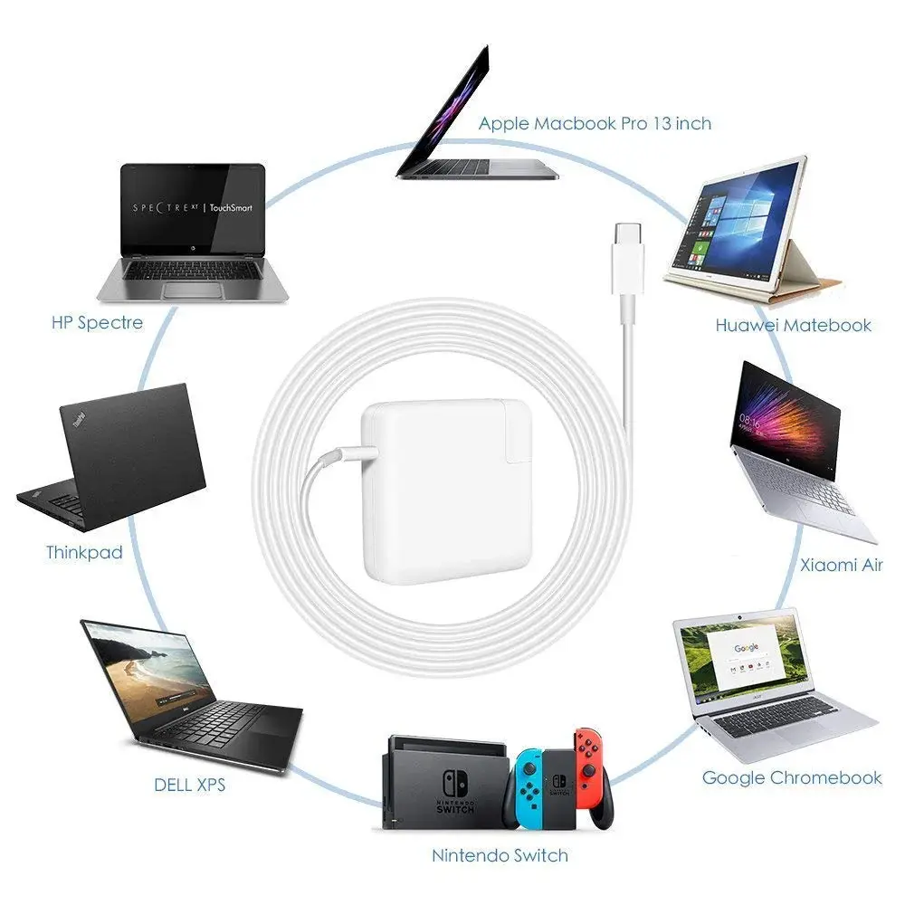 Powerful 87W USB-C (USB-PD) charger with USB-C to USB-C cable—ideal for MacBook Pro 15″ (2016–2019). Fast, safe charging with global input and LED status