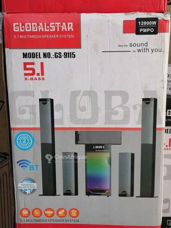 Turn your living room into a mini-cinema. The Global Star GS-9115 delivers 100W (manufacturer rated) 5.1 surround with an 8-inch subwoofer for deep bass, clear dialogue from the center speaker, and immersive satellites for movies, music, and gaming. Play wirelessly via Bluetooth, or use USB/SD, FM radio, and AUX—all controlled from the front panel or the included remote.