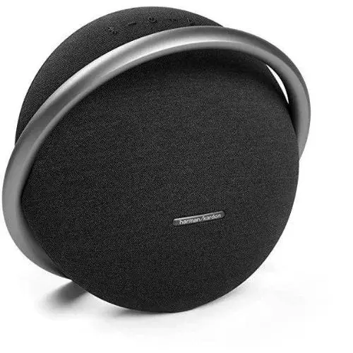 Premium portable speaker with Harman Kardon’s signature sound, dual tweeters + woofer for wider stereo, and an elegant aluminum carry handle. Enjoy up to 8 hours of playtime, USB-C charging, Bluetooth multipoint to connect two devices, and Wireless Dual Sound to pair two Onyx Studio 7 units for bigger audio. Fabric grille and robust build suit home, office, or travel.