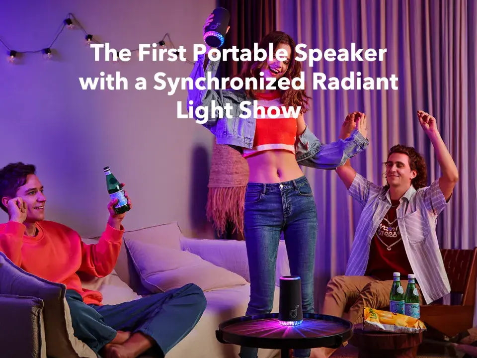 Portable Bluetooth speaker with a beat-synced RGB light ring, bold Soundcore Signature Sound, and IP67 water/dust protection for outdoor use. Enjoy all-day playtime, USB-C fast charging, PartyCast multi-speaker linking, and Soundcore app EQ presets—great for travel, picnics, and backyard vibes.