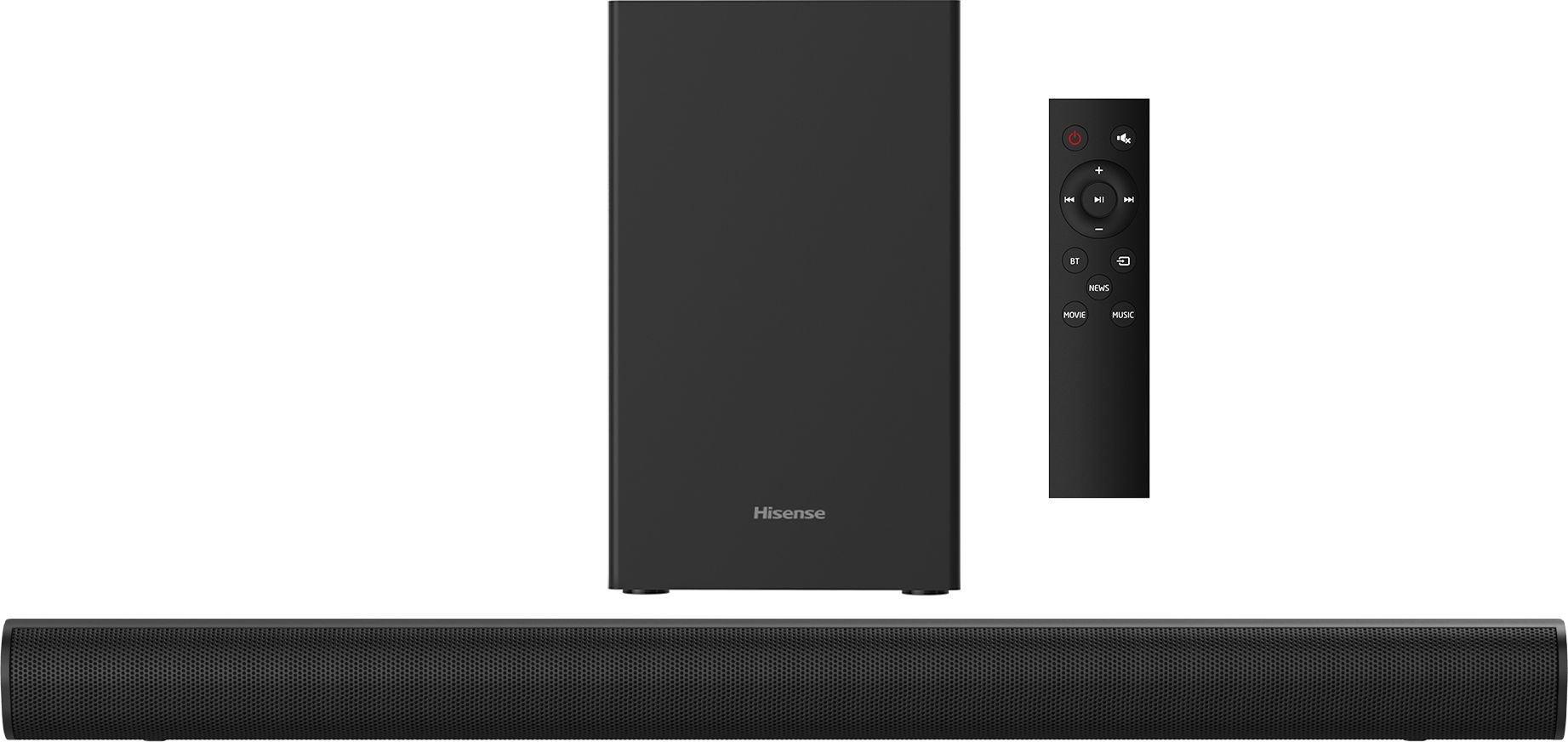 Soundbar, wireless subwoofer, remote control with batteries, HDMI cable (bundle-dependent), optical cable, power cords, wall-mount kit, user guide.