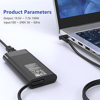 Output: 19.5V ⎓ 7.7A (150W) • Connector: 4.5×3.0mm blue tip, center Smart Pin