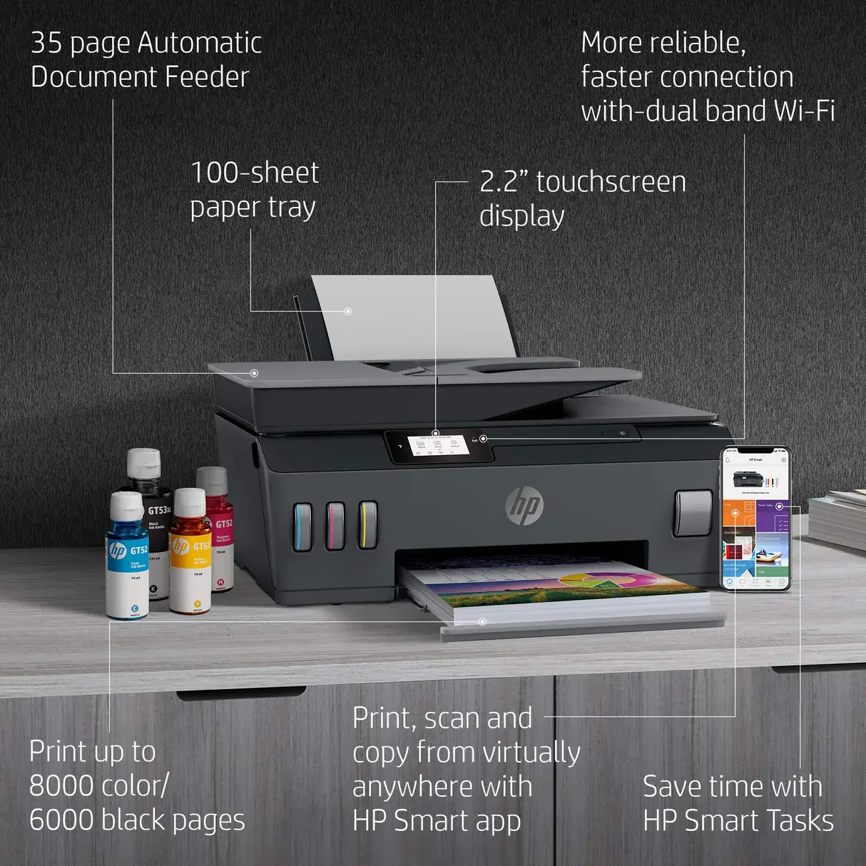 High-capacity ink tank printer designed for ultra-low cost pages and everyday productivity. Enjoy spill-free refills, a 35-sheet ADF for fast multi-page scan/copy, dual-band Wi-Fi with the HP Smart app, and borderless photo prints up to A4—perfect for home offices and small businesses.