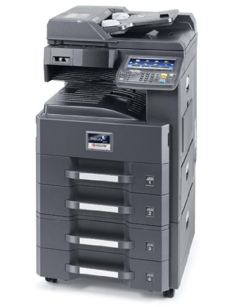 Kyocera TASKalfa 3010i A3 mono multifunction—30 ppm (A4), duplex print/copy, colour scanning, network-ready, 2×500-sheet cassettes + 100-sheet MPT. Robust, low-TCO workhorse for schools and offices.