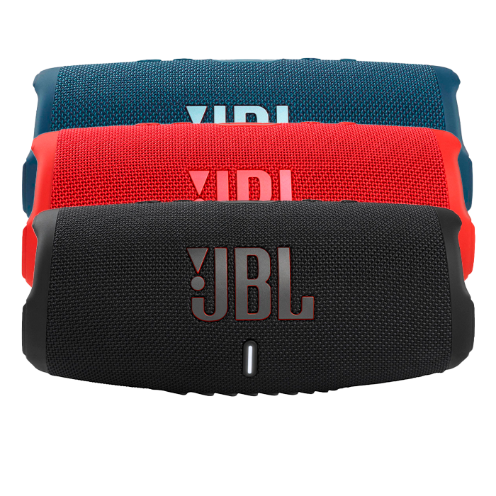 Rugged portable speaker with JBL Pro Sound, separate woofer + tweeter and dual passive radiators for deep bass. IP67 waterproof/dustproof build, up to 20 hours of playtime, and a built-in 7500 mAh power bank to charge your phone. Bluetooth wireless with PartyBoost to link multiple JBL speakers. USB-C charging, fabric grille, and silicone bumpers—made for travel and outdoor use.
