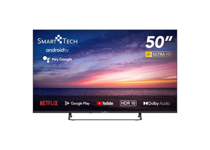50-inch 4K UHD (3840×2160) Android TV with HDR for bright, sharp pictures and smooth motion. Stream your favourites via Android TV with Google Assistant voice search and Chromecast built-in; connect soundbars or pads over Wi-Fi and Bluetooth. Multiple HDMI & USB ports handle decoders, consoles, and flash-drive movies. Slim, bezel-light design is wall-mount ready. Approx. size (without stand): 111.7 × 64.6 × 8.4 cm; with stand: 111.7 × 70.1 × 26.0 cm; Weight: ~10.0 kg; VESA: 300 × 200 mm.