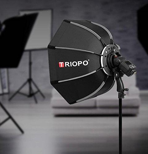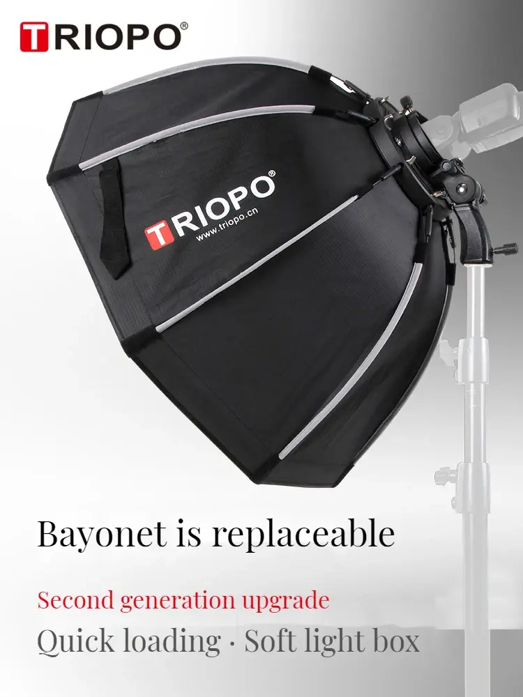 Triopo 90cm Portable Softbox K90 Designed For Studio And Outdoor Photography, Offering Smooth, Even Lighting With Easy Bowens Mount Setup. Includes Inner Diffuser, Outer Diffuser, And Honeycomb Grid For Precise Light Control.