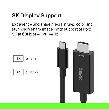 Enjoy Ultra-Sharp Video With This USB-C To HDMI 2.1 Cable, Delivering Up To 8K 60Hz Or 4K 120Hz (Device Dependent) From Laptops, Tablets, And Phones To TVs, Monitors, Or Projectors. Gold-Plated Connectors, Robust Shielding, And Snug Fits Ensure A Clean, Stable Signal For Work, Gaming, And Streaming. Simple Plug-And-Play—No Drivers Needed.